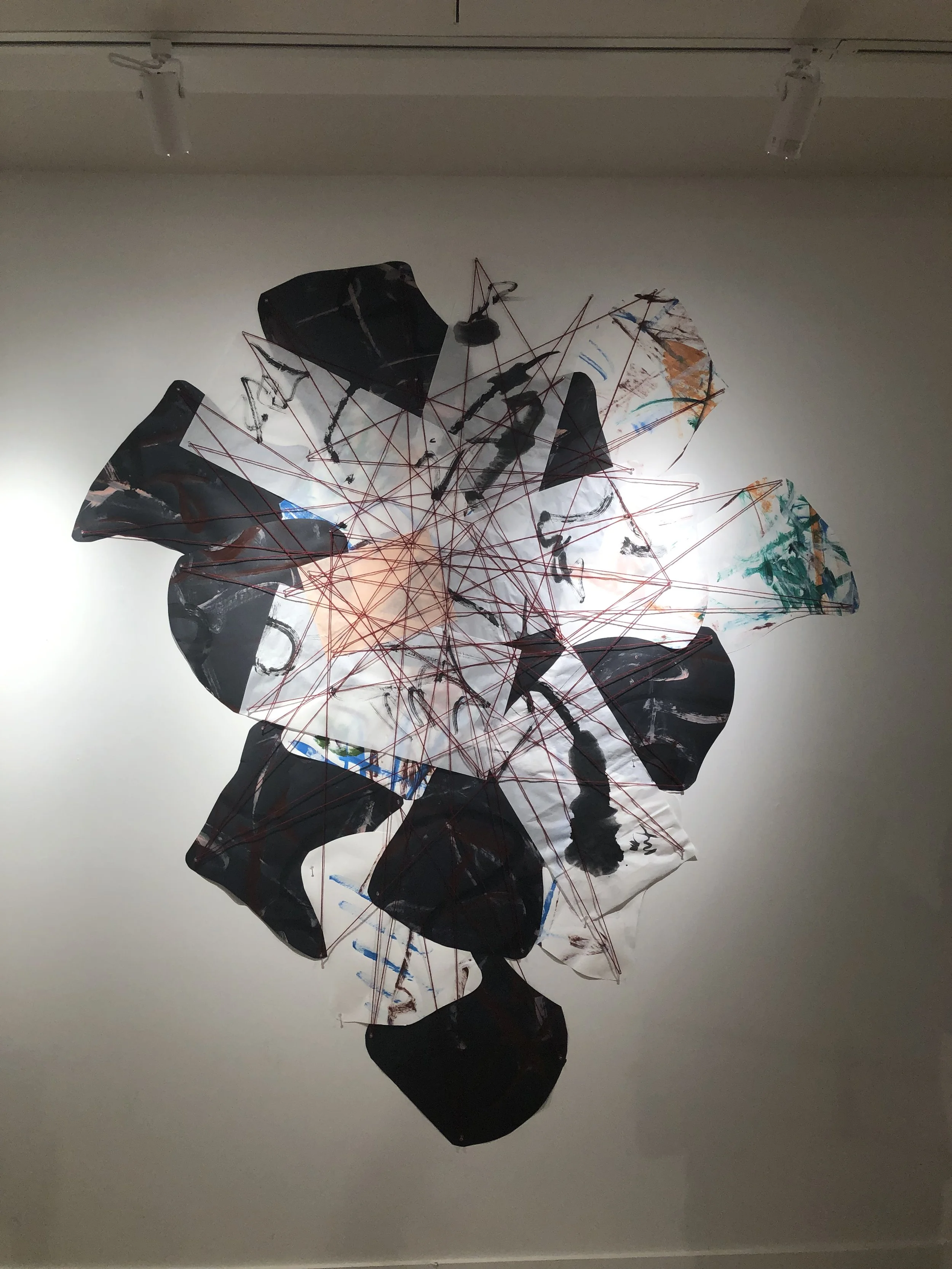 Black Ink, Korean Mulberry Paper, and Thread on the wall, 96 x 110 in, 2024