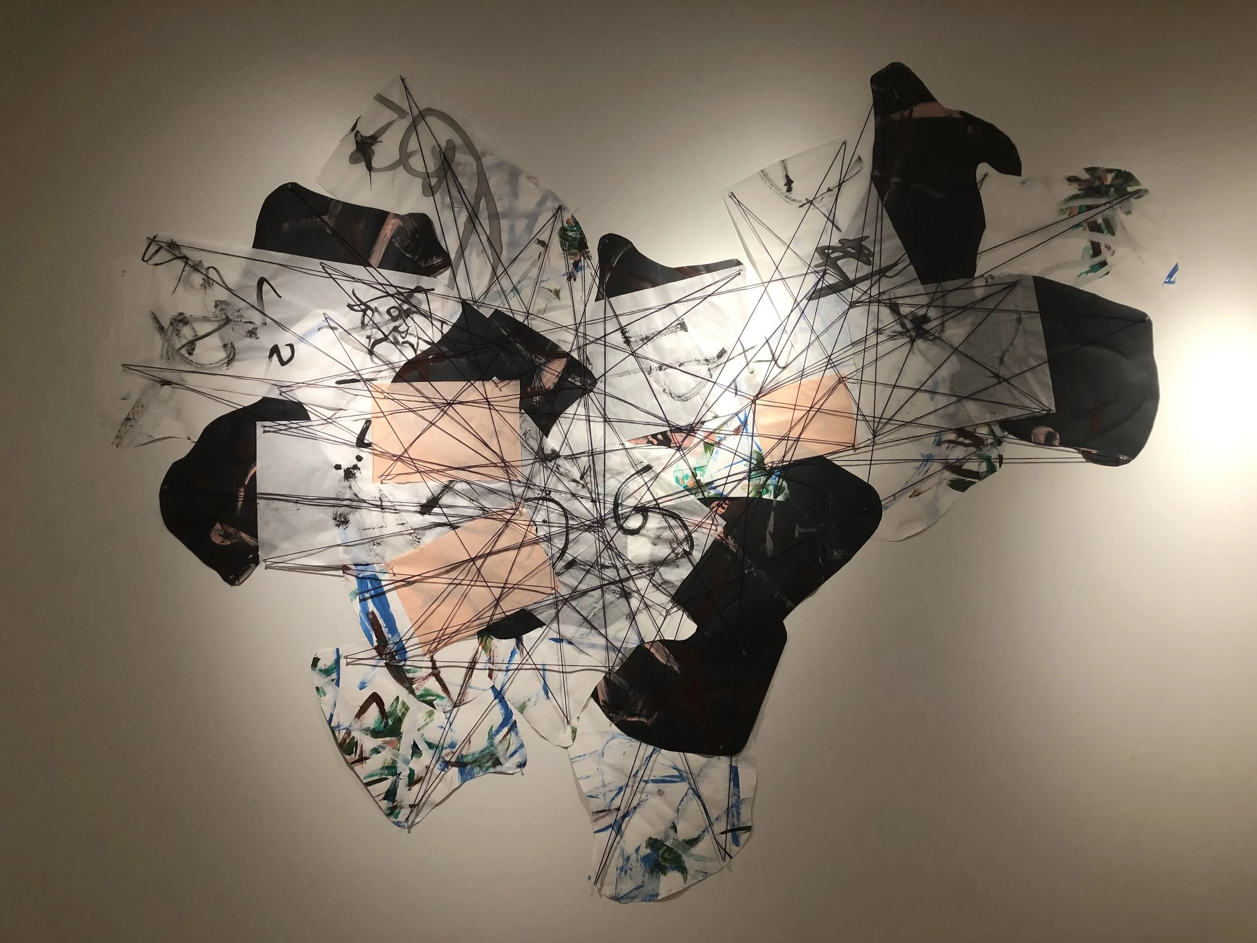 Korean mulberry paper, Photo matte paper, and Thread on the wall, 86 x 115 in, 2024