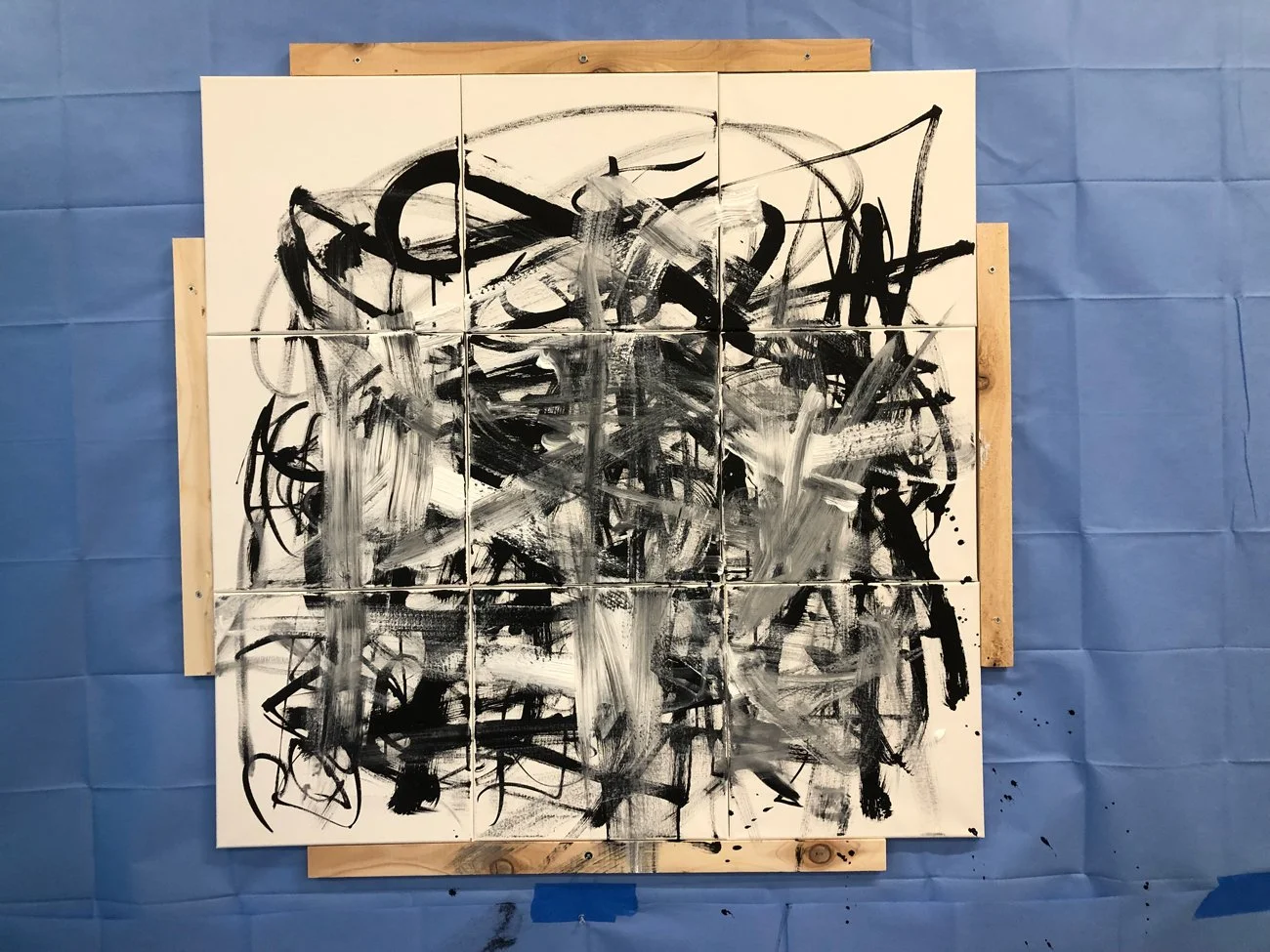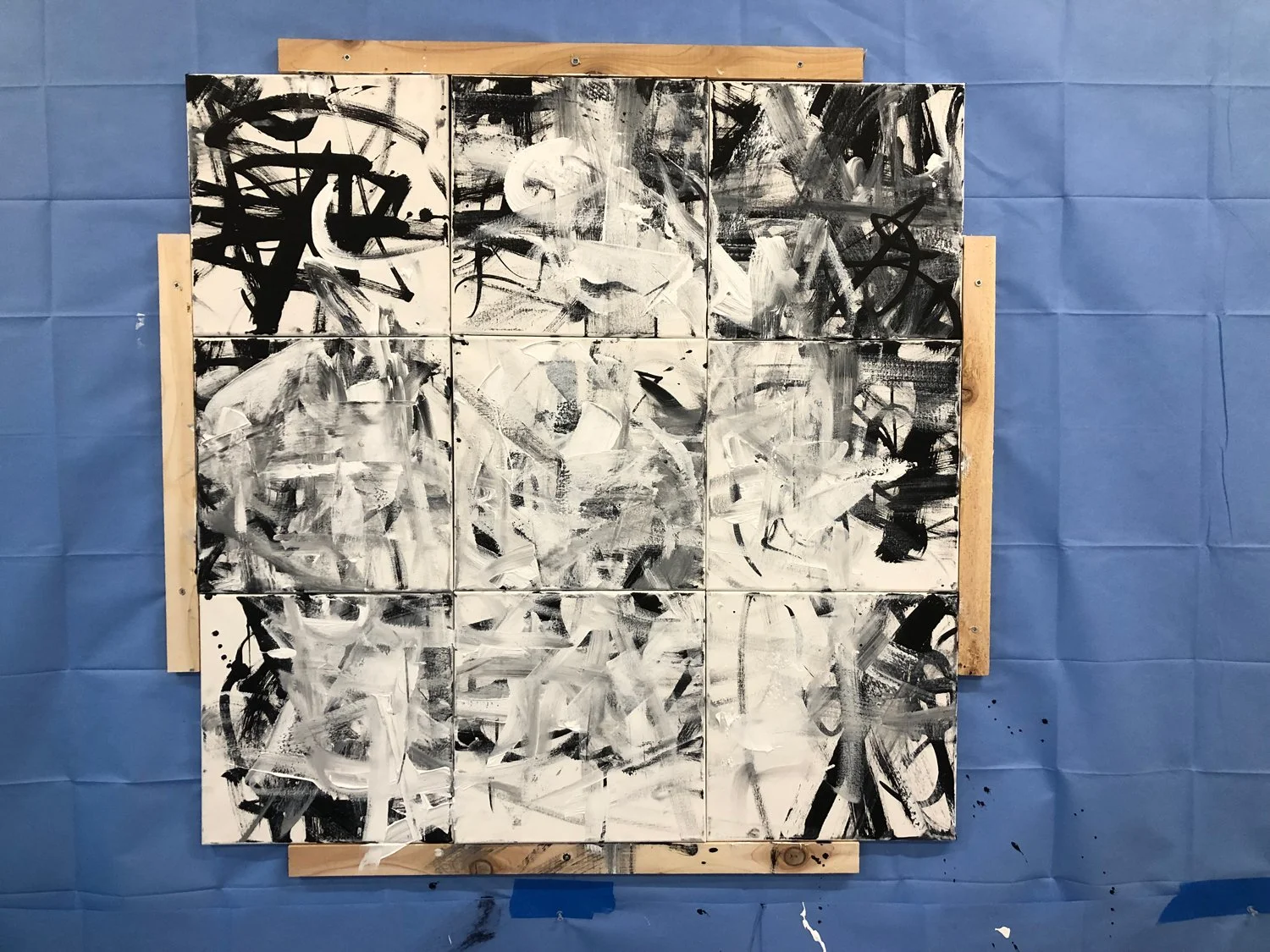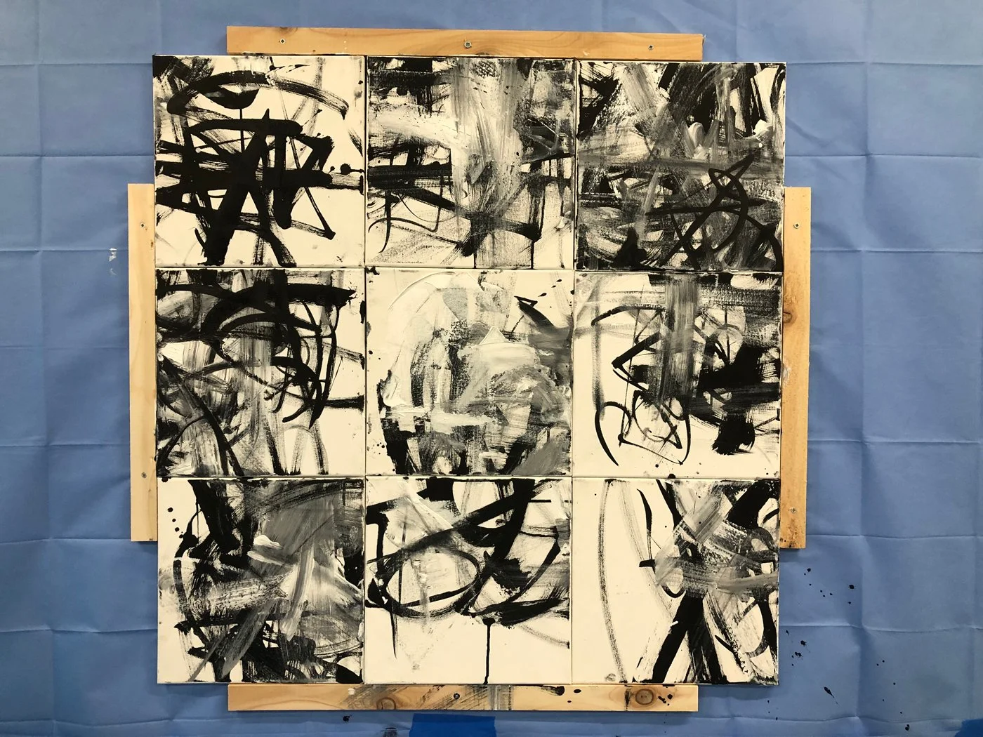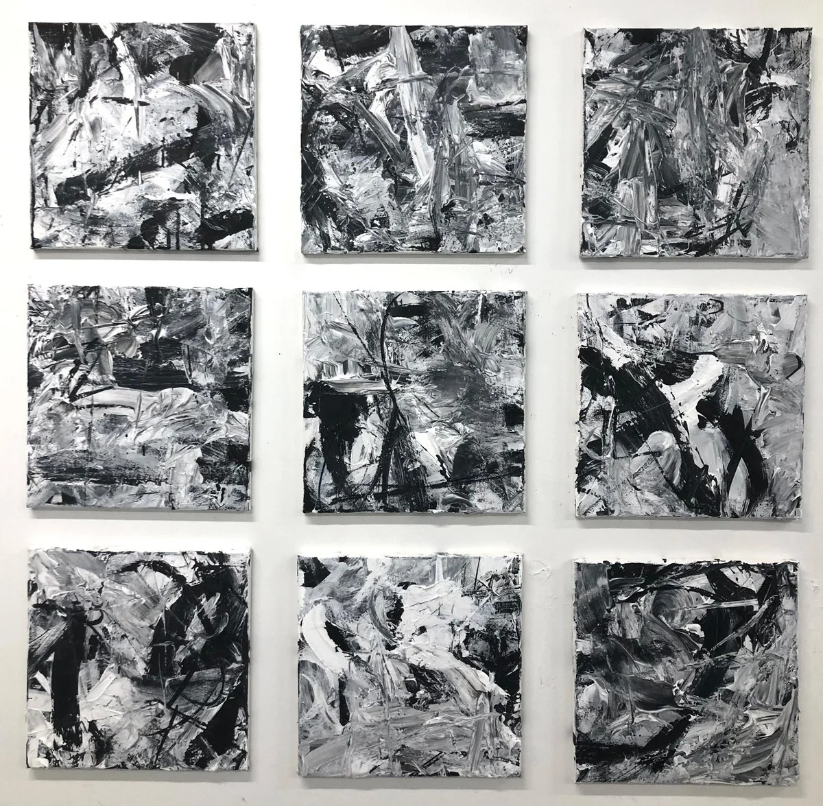 Acrylic and Black ink on canvas, 12 x 12 in. each. 2023